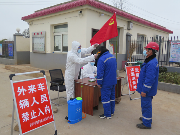 泗水分公司管理人員為職工測量體溫