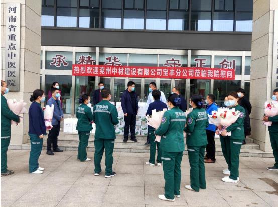 寶豐分公司經(jīng)理親切地將精心準(zhǔn)備的鮮花送到護(hù)士的手中,并再次對醫(yī)護(hù)人員表示慰問,祝愿全體醫(yī)護(hù)人員及家人身體健康,致敬這些走在抗擊疫情一線的最美“白衣天使”。