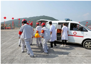 演練模擬在礦山現(xiàn)場(chǎng)1512平臺(tái),由于雨后爆堆松軟,排險(xiǎn)不及時(shí),導(dǎo)致挖掘機(jī)進(jìn)行挖裝作業(yè)時(shí)發(fā)生坍塌事故,土石坍塌砸到駕駛室,車門無(wú)法正常開啟,駕駛員被困駕駛室并且傷情不明,現(xiàn)場(chǎng)管理人員向應(yīng)急指揮部報(bào)告后,立即啟動(dòng)應(yīng)急預(yù)案,組織人員開展傷員救助。 演練開始前兗州中材呂梁分公司項(xiàng)目經(jīng)理王建立發(fā)表講話,并介紹了項(xiàng)目情況。王經(jīng)理表示,呂梁分公司成立十年來(lái)一直秉承一個(gè)央企的責(zé)任,履行企業(yè)的安全管理職責(zé),展現(xiàn)國(guó)有大型企業(yè)的擔(dān)當(dāng)。安全工作從嚴(yán)要求,做好企業(yè)安全形象。提升服務(wù)高度、精度和寬度,為礦山行業(yè)的健康發(fā)展貢獻(xiàn)力量。