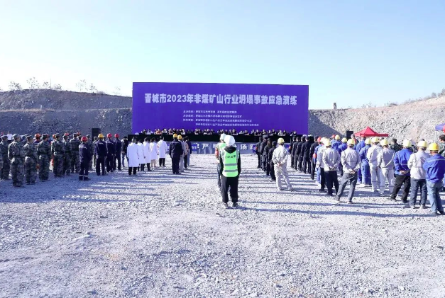| 為進一步提升非煤礦山企業(yè)安全意識和應對突發(fā)事故的處置能力,晉城市 2023 年非煤礦山行業(yè)坍塌事故應急演練在晉城山水合聚水泥有限公司司家掌石灰?guī)r礦(澤州分公司承建礦山)舉行。晉城市應急管理局、縣應急管理局、縣委宣傳部、縣衛(wèi)健局、縣公安局、縣氣象局、縣消防救援大隊、縣自然資源局、晉城市救援救護隊、晉城市能源技術中心等 12 家單位120余人參與演練。市應急管理局三級調研員柳青、市應急管理局救援協(xié)調科邰建民、各縣區(qū)應急管理局負責人、分管負責人、非煤礦山行業(yè)相關科室負責人及全市所有非煤礦山企業(yè)主要負責人等 130 多人現(xiàn)場觀摩了演練。