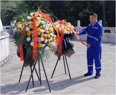 驚雷浮雕、陳獨(dú)秀銅像、新青年碑刻......走過柏林墓道,來到陳獨(dú)秀先生的墓前,項(xiàng)目執(zhí)行經(jīng)理張作鋼同志代表公司敬獻(xiàn)花圈,帶領(lǐng)全體黨員和青年同志,懷著無比崇高的敬意,恭敬地向墓碑三鞠躬,用行動(dòng)表達(dá)對(duì)先生的敬仰之情。